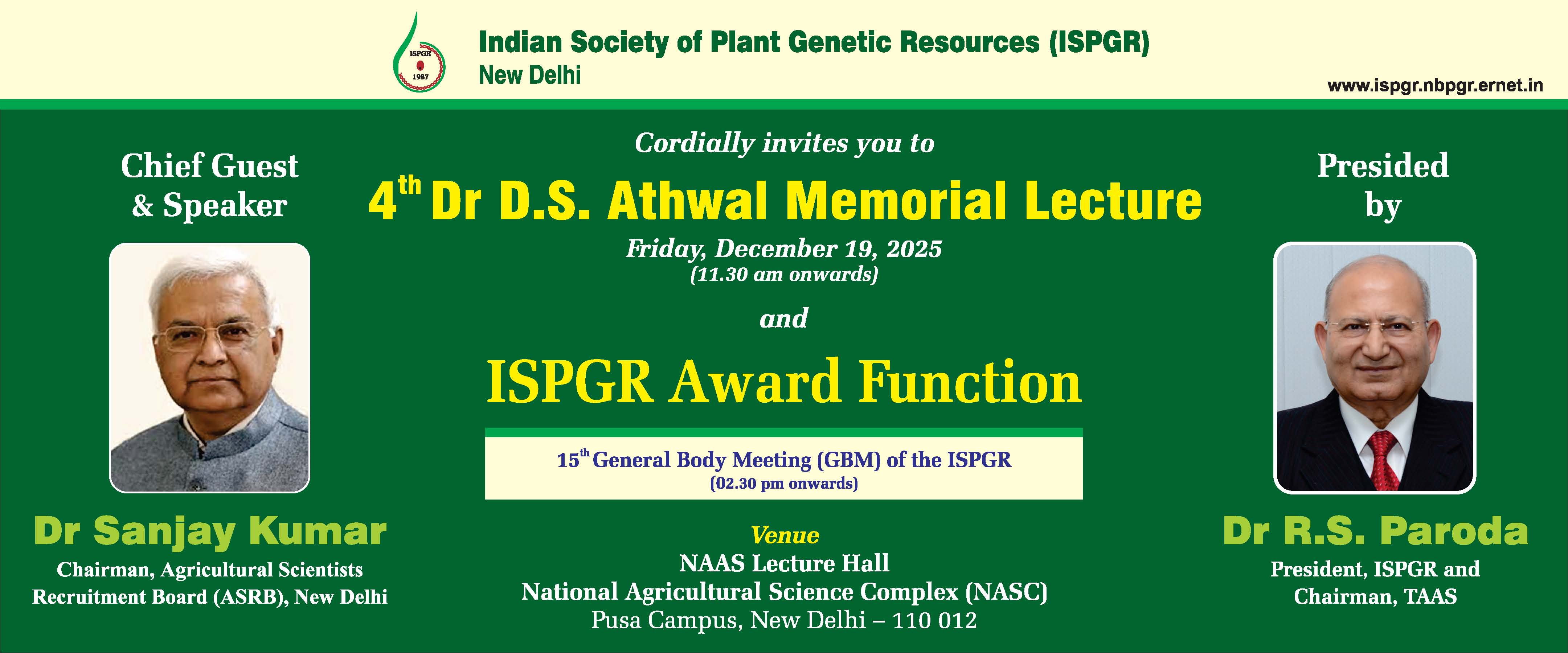 Dec 19, 2025 (Friday), 11.00 a.m. onwards; Venue: NAAS Lecture Hall, NASC, New Delhi